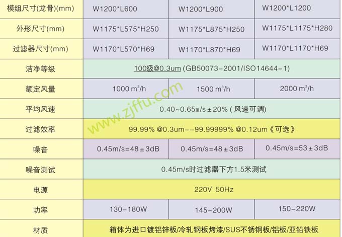 FFU凈化單元規格